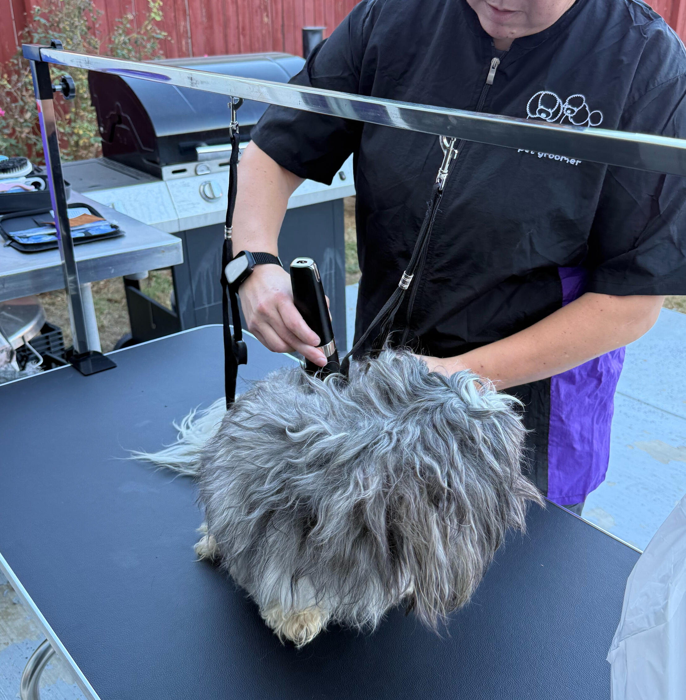 We offer basic trimming and nail care. Baths are available only if you have a suitable space we can use in your home. We also use dry shampoo to keep your pup’s coat clean and fresh. Our mobile groomer brings all the tools needed for a quick, stress-free grooming session, keeping your furry friend clean, comfortable, and looking their best!